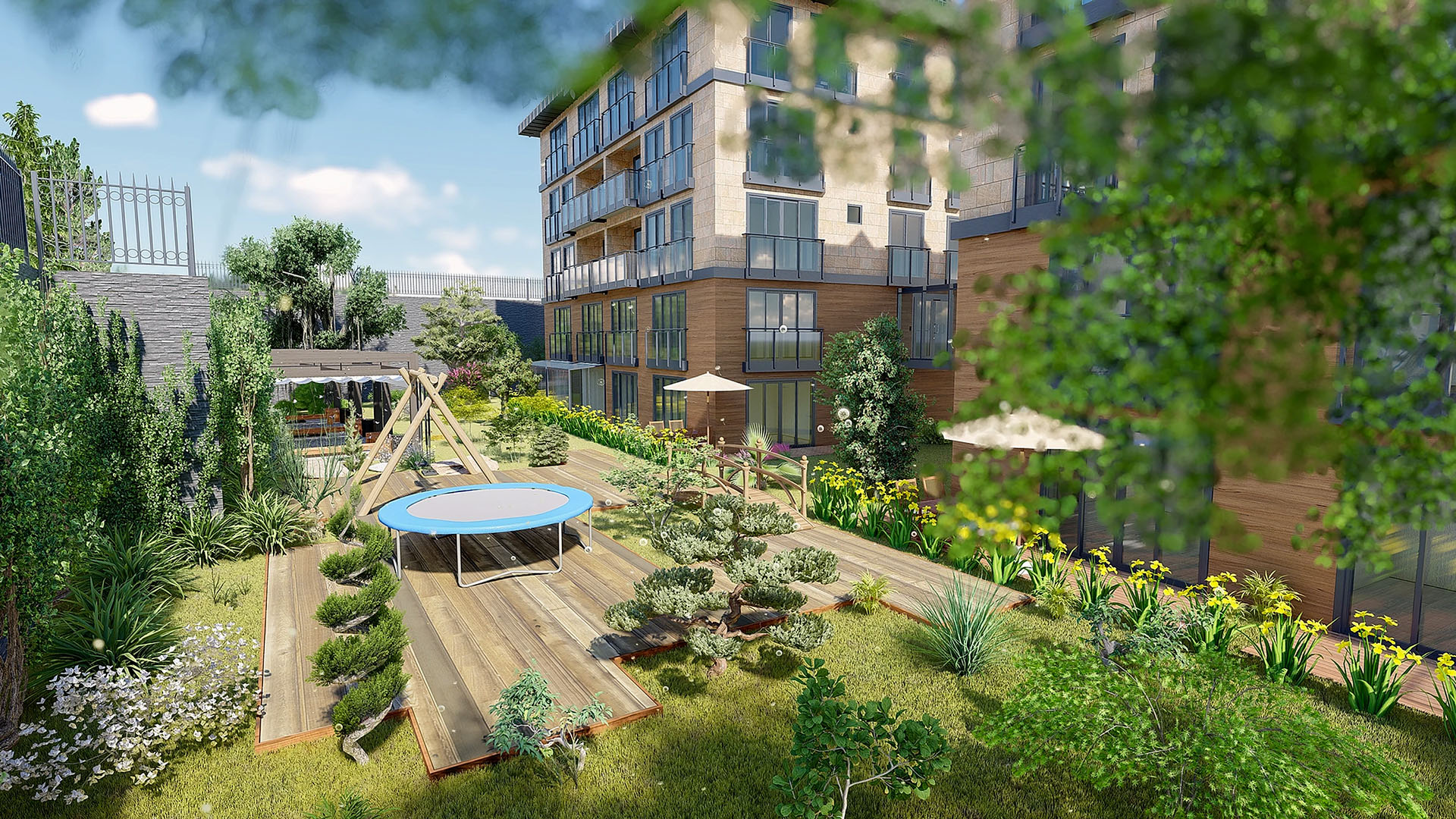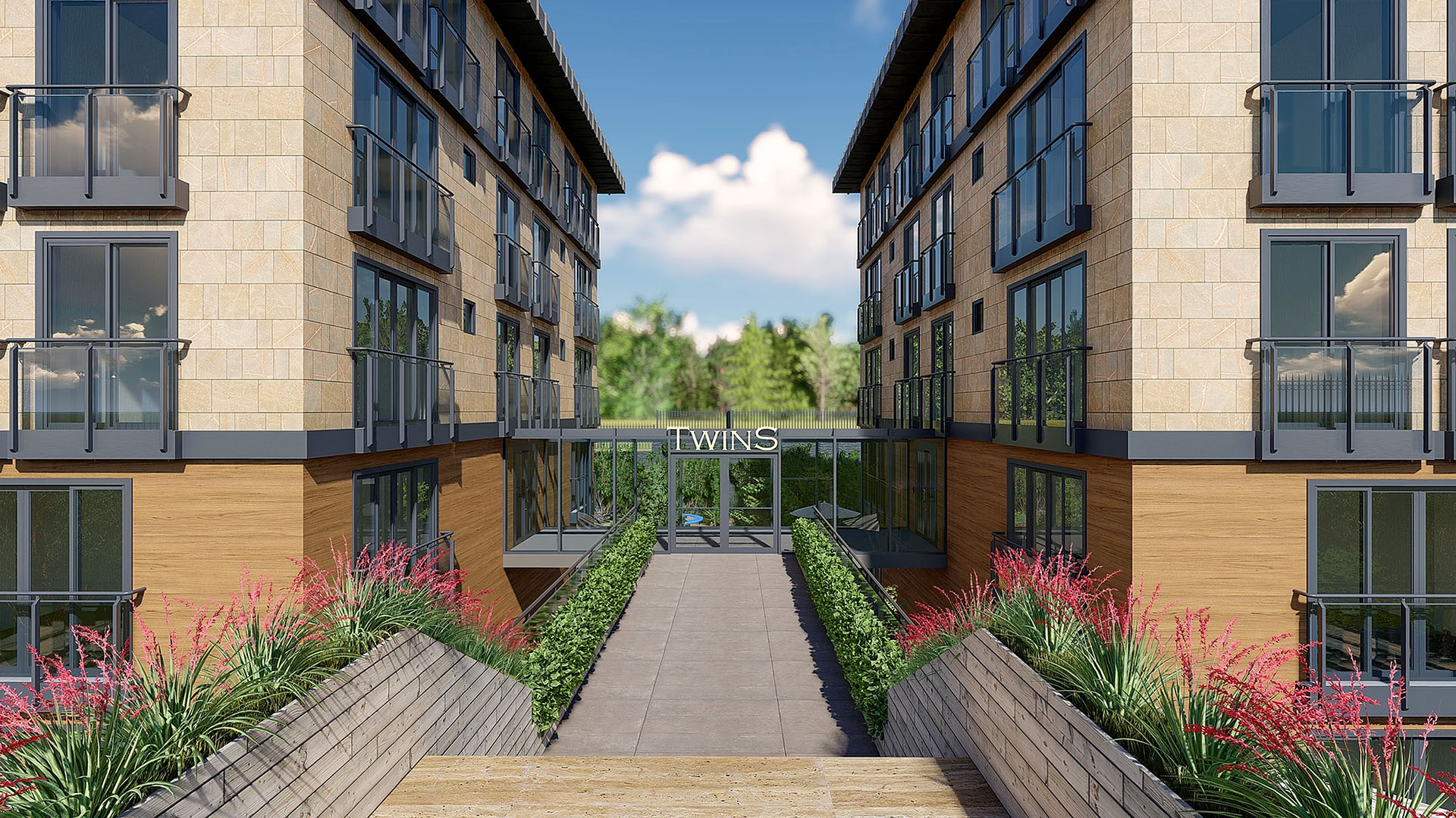 ​İstanbul Kemerburgaz’da bulunan konut projesi, iki simetrik bloktan oluşan ve taban oturumundan geriye kalan arsa alanında peyzaj düzenlemesiyle göz alıyor.